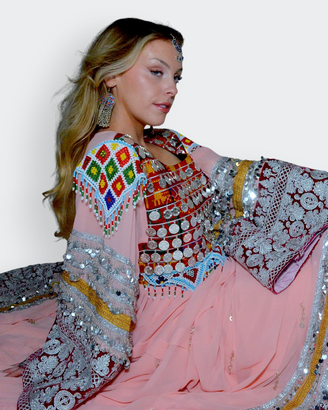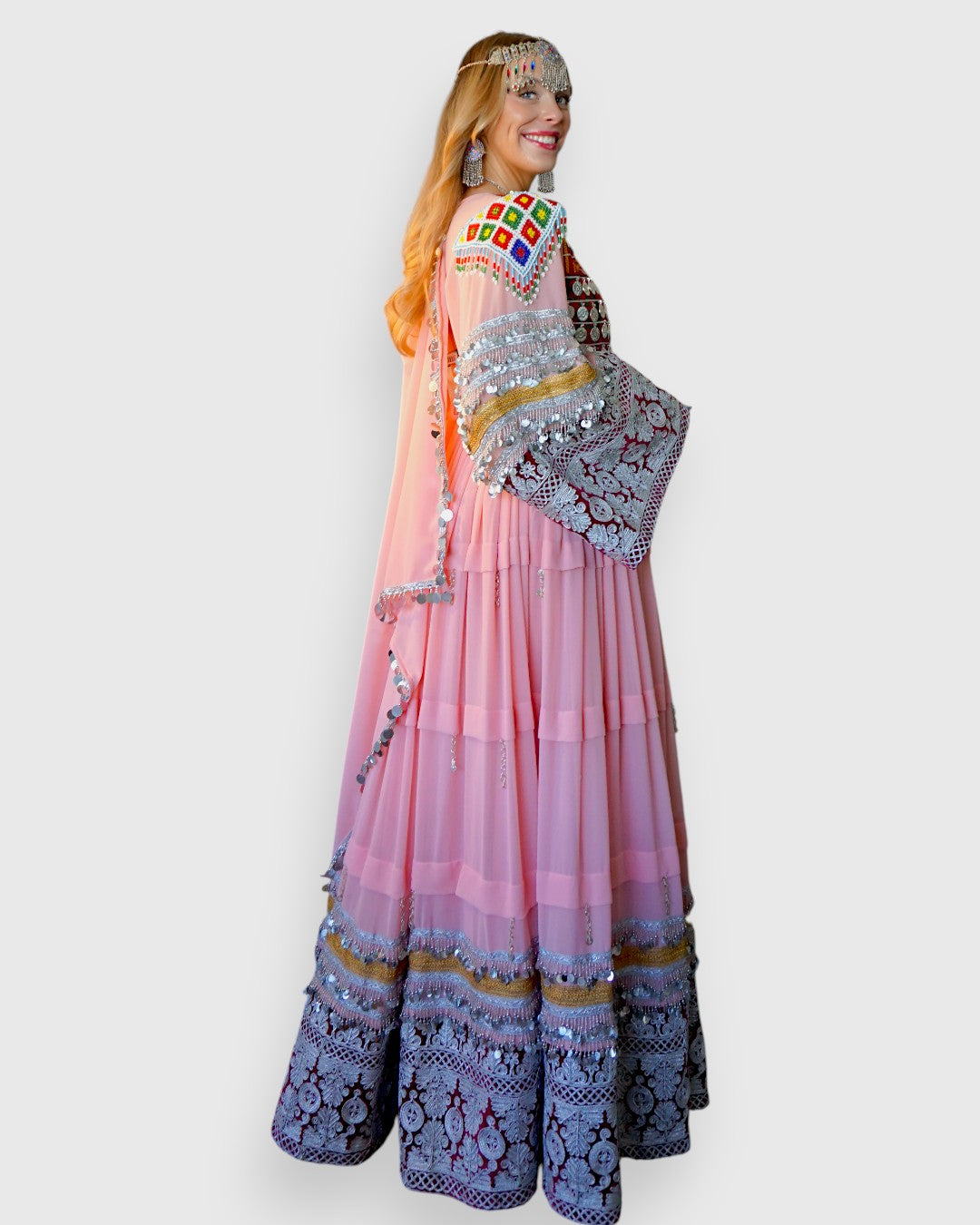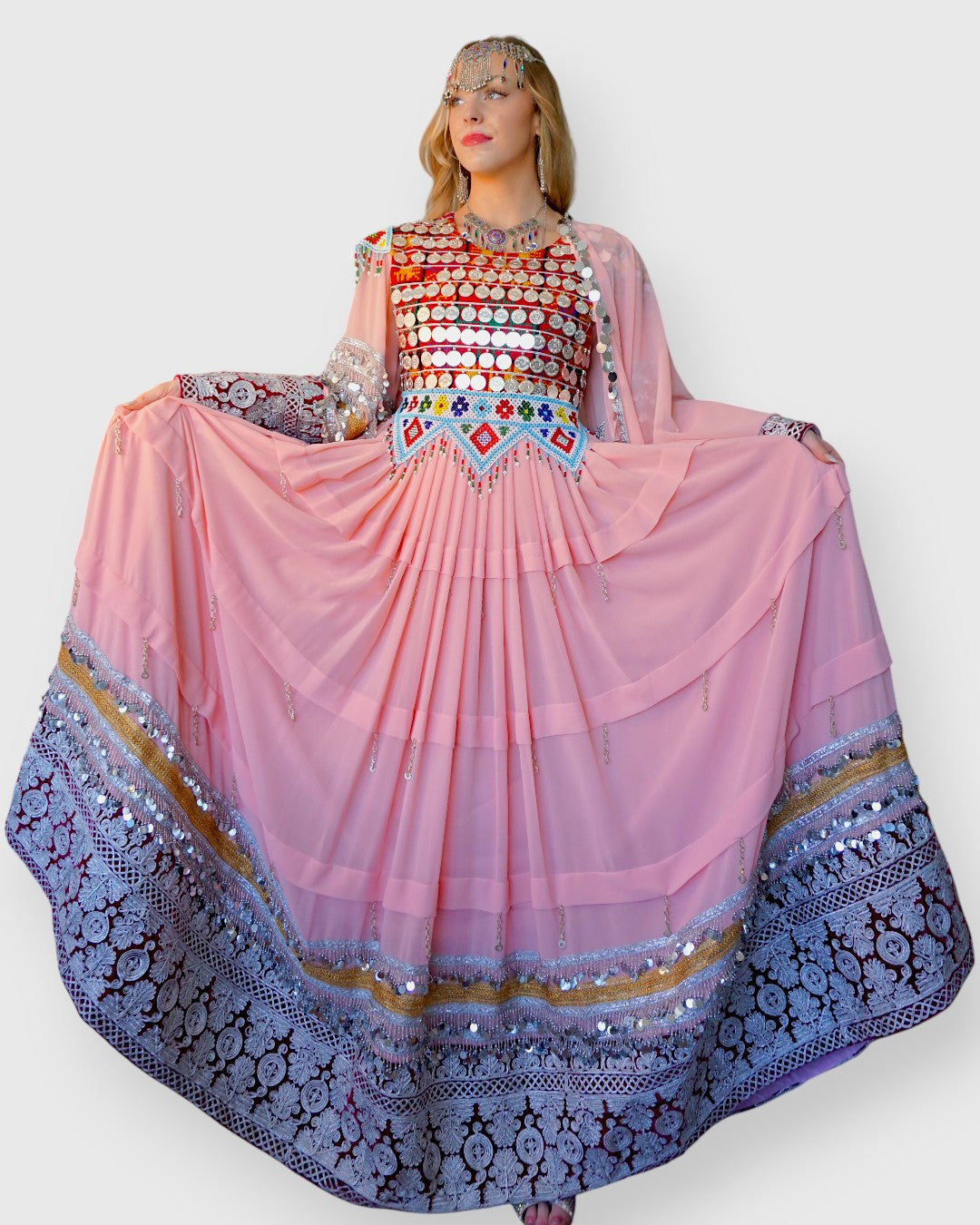 Amara Dress is a reverent tribute to classic Afghan ceremony, rich, grounded, and deeply expressive. Crafted in plush velvet and finished with traditional detailing, this piece carries the weight of heritage while remaining elegant and composed in its presence. It is a dress meant to be worn with intention.